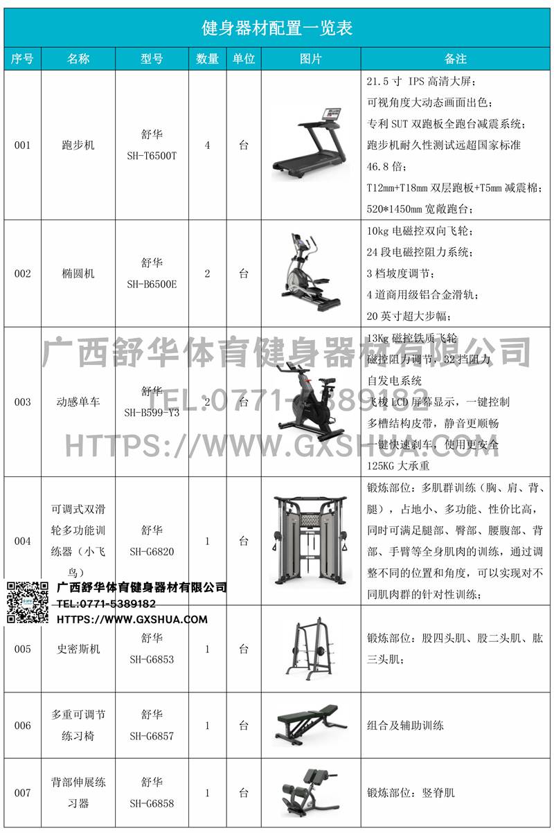 小飞鸟*1台,史密斯机*1台,多重可调节练习椅*1台G5755腹肌板*1台,6付哑铃套组*1套,G599哑铃凳*1张,可以实现对不同肌肉群的针对性训练,满足肌肉训练需求,全方位激活身体机能。