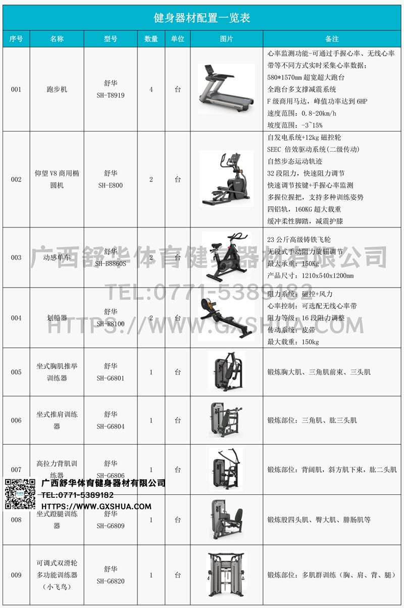 主要配置小飞鸟(1台)、史密斯机(1台)、多重可调节练习椅(1台)、腹肌板(1台)、10付哑铃套组(1套)、哑铃凳(1台)、上斜练习椅(1台),可以实现对不同肌肉群的针对性训练,满足肌肉训练需求,全方位激活身体机能。