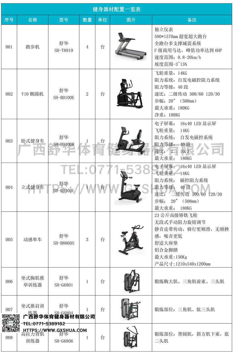 1.mk体育V9跑步机SH-T8919*4台-独立仪表-简洁大气,全新外观设计,健康运动新选择;心率监测功能,可通过手握心率、无线心率带等不同方式实时采集心率数据;580*1570mm超宽超大跑台-跑感舒适,跑台整体安全稳定;全跑台多支撑减震平台,保证跑台超强支撑力,达到180kg支撑,满足专业健身房需求。F级商用马达-超强马达,AC 3.0HP 交流,峰值功率达到6HP,F级商用品质。速度范围达到0.8-20km/h;V9跑步机可实现跑台扬升功能,坡度范围-3~15%,满足客户不同的锻炼需求。